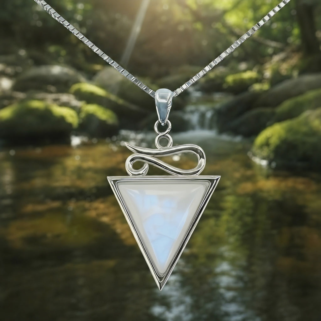 Symbolism: The trinity form represents sacred unity—the meeting of three energies that create wholeness. In silver, it embodies purity and reflection; in Moonstone, intuition and light. Together, they form a talisman of alignment, protection, and luminous self-trust.